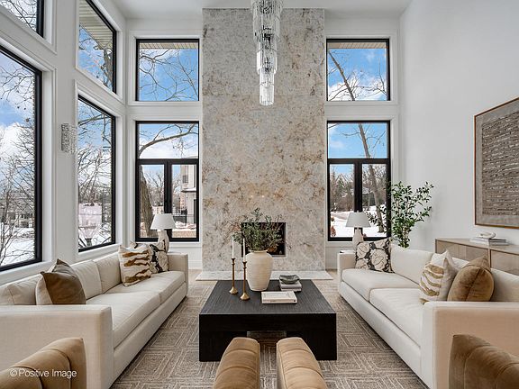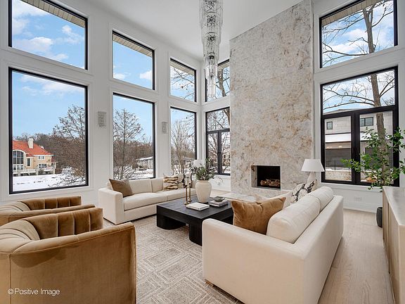 Located in Burr Ridge's highly renowned gated community of Falling Water, this waterfront residence has been reimagined to perfection with luxurious, top of the line finishes. The home sits on a waterfront lot and is part of an enclave of custom residences designed to preserve the natural landscape, featuring rolling hills, ponds, streams, and mature oak and hickory forests. This fully renovated five bedroom residence, plus a stunning first floor office, with five and a half bathrooms, combines privacy, scale, and refined finishes. Unique features include a Himalayan salt sauna on the lower level and dramatic 18 foot ceilings accented by a grand Crystallo stone fireplace in the main living space, creating a sense of quiet luxury throughout the home. A large deck, conveniently accessible from the kitchen, is ideal for grilling, dining, and entertaining. Additionally, a cozy hard-top screened room on the deck enhances the outdoor living experience. The residence offers oak hardwood flooring throughout, including a chevron pattern at the entry, open light filled living spaces, fireplaces featuring Crystallo stone, and a customized chef's kitchen equipped with Thermador appliances, Crystallo countertops, and a massive Black Gold quartzite waterfall island. All bathrooms have been redesigned with new, top of the line vanities, premium Kohler plumbing fixtures, marble tile, and heated floors throughout. The lower floor offers another level of flexible space with a home theater sound system, extended wet bar, secondary kitchenette with heated floors throughout, and a luxurious spa bathroom with steam shower to enjoy straight off your 5th bedroom. Exterior updates include new Trex decking, professionally designed landscaping, irrigation systems, and a concrete paver driveway. The heated three car garage features an epoxy floor and EV ready outlet. The exterior showcases brick, limestone, and stucco construction, along with a cedar shingle roof and insulated attic designed to improve energy efficiency, interior comfort, and protection against extreme weather. The property is conveniently located just a short 8 minute drive from Burr Ridge Village Center, offering upscale shopping, brand name fashion retailers, and dining, as well as a quick 4 minute drive to the Stevenson Expressway. Welcome home!