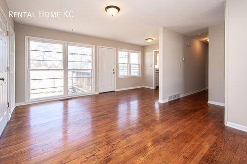 APPLICATION PENDING Cozy 2-bedroom, 1-bath mid-century-modern style duplex with full basement and attached garage. Living room extends from front to back of home with large windows and walkout to deck. Galley style kitchen with all appliances included. Living, dining, hall, and bedrooms have real hardwood floors. Fairly small bedrooms. Basement level features a nice size finished rec room and a large unfinished room for laundry, mechanicals, and lots of storage. Big back yard with deck and small fenced area ideal for small pets. Located near 95th and I-35 for quick highway access and less than a mile from Oak Park Mall area shopping and dining. Also close to downtown Lenexa.) SHOWING STATUS: Vacant AVAILABLE: Now LEASE TERM Initial lease through 6/30/26, 12-month extension optional BASEMENT: Full, partially finished FENCED YARD: Small fenced area in back of house APPLICANCES: Refrigerator, washer, and dryer provided TENANTS: No more than 2 adults, no more than 4 total PETS: Up to 2, under 60 pounds, over 1 year old, non-aggressive breed Application Fee: $40/adult Non-refundable