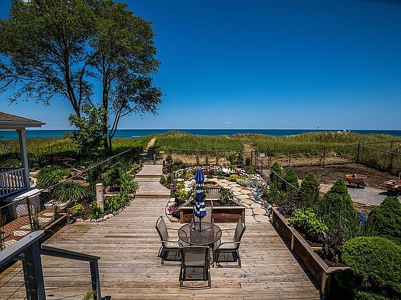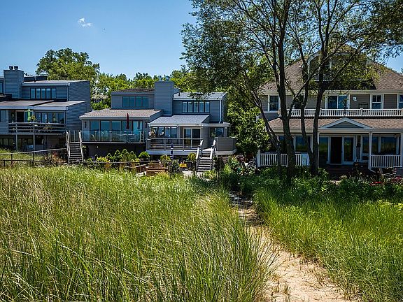 LAKEFRONT!! Famous Architect Jerome C. Hyndman designed this town home. Fantastic views with open design concept bringing Lake Michigan breezes and views in to the home. Chicago skyline views as well. You can actually walk from your backyard deck to the sandy beach without obstruction. Bamboo flooring thru out main living area. One of only 6 town homes literally on the beach in Indiana, Illinois and Wisconsin! This home is a must see with too many upgrades to list. Award winning backyard design of perennials with stone fire pit. Large outdoor deck with path boardwalk to beach. Amazing 10 seated Hot Tub with all the bells and whistles. Rinse off with your own outdoor bathroom with shower. All granite tops thru out with slate and stone bathrooms. New roof and siding in 2018. No H.O A fees! Room to expand home on Lake Michigan side. 3 bathrooms in home and a 4th bathroom with full shower outdoors.