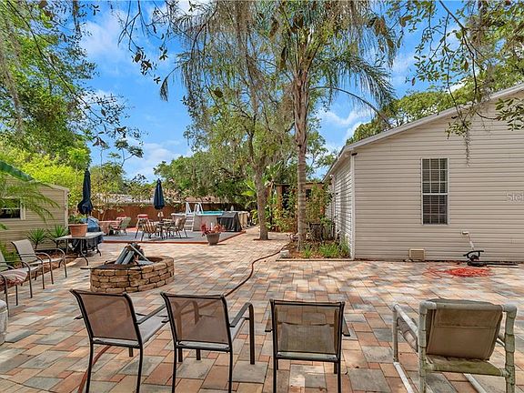 Welcome to this beautifully updated and immacculately maintained home on an oversized fenced .62 acre lot that could be your own private oasis,or a family compound with two RV hookups. The home interior features a new kitchen with granite counters, ample white shaker cabinetry, black stainless appliances, a pantry and a durable easy to maintain vinyl plank floor. You will find newer laminate flooring in the open plan living room, dining room and family room areas. The master suite is bright and spacious with a large bathroom boasting a garden tub, separate walk-in shower and a double sink vanity. At the other end of the home the 4th and 5th bedrooms and full bath could combine as an in-law suite with its own full bathroom. There are two other spacious bedrooms and a third full bathroom. A large bonus Florida room was added to the back of the home but is not included in the sqauare footage. It functions as interior space and is heated and cooled by a supplemental system. Other features include, skylights and new LED lighting. Outside the home you will admire the beautiful pavers on the driveway and the fabulous spacious and private outdoor entertainment area at he back of the home featuring an almost new pool and firepit accented by mature bird of paradise and palm trees. Bannana plants and garden planters provide the opportunity to cultivate your own fruit and veg. Two outbuildings one with electricity offer space for a workshop and storage. There are hookups for two RVS and lots of space for many possible uses including subdividing but currently its totally fenced for privacy. The well and filtration system is new. The location provides easy access to the Suncoast Parkway for access to Tampa International and beyond.