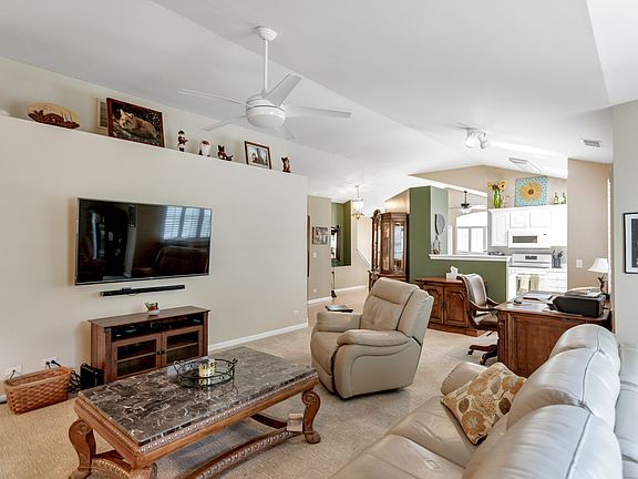 Nothing to do but move into this 2 bedroom townhome in desirable Georgetown in the heart of Lakewood. This home features a spacious living room with vaulted ceilings and a gas fireplace. The separate dining room is perfect for entertaining. The kitchen boasts modern white cabinetry, a pantry cabinet, backsplash, and skylight. Master bedroom showcases vaulted ceilings, huge walk-in closet, and an en-suite bath with separate shower and soaking tub. Generous size second bedroom with ample closet space and a full hallway bath. Convenient main level laundry room includes a sink and cabinets for storage. Relax on the private balcony overlooking the professionally landscaped common areas. BRAND NEW furnace and A/C unit less than a year old!! Great location near shopping, restaurants, and Red Tail Golf Club.