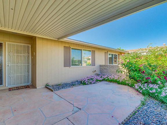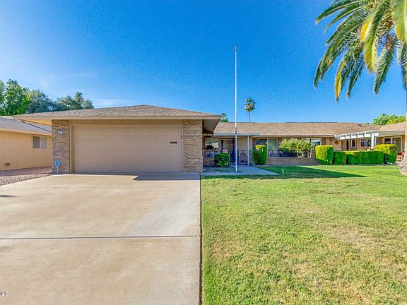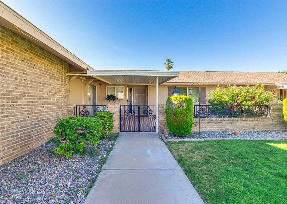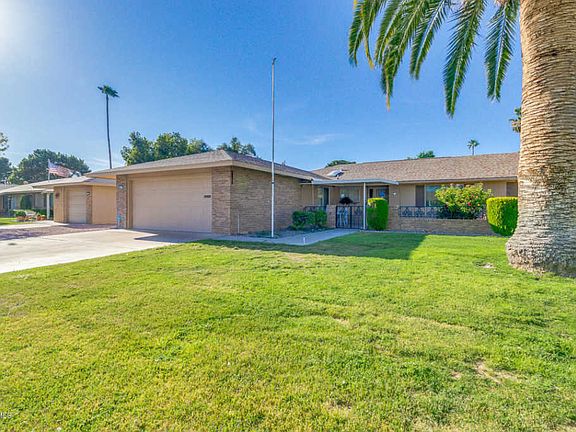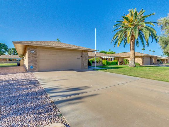 Awesome Updated Single Story Home w/Incredible Outdoor Patio Space in the Heart of Sun City!! This Gorgeous Patio Home has 2 Huge Bedrooms, Giant Oversized Great Room, Eat-In Kitchen, Formal Dining Room, Office Space & Bonus/Hobby Room. You'll fall in Love with the New Decorator Flooring Throughout the Home...NO CARPET! The Main Living & Bathrooms boast All New Modern Staggered Gray Stone Tilework & Bedrooms with Designer Wood Planked Flooring. Bathrooms have been updated with New Vanities, New Fixtures, New Lighting & Toilets. The Kitchen Features Light & Bright White Cabinetry with Neutral Counters, Breakfast Bar, Dishwasher, New Cooktop & Range Hood & Adorable Antique Double Oven!! Breakfast Room walks out to the Enclosed Front Patio Space for expanded dining or your Morning Coffee. Master Bedroom has 2 walk in closets, Large Shower w/Glass Enclosure & Rare Built in Make-Up Vanity w/Antique Lighting. This Home is Truly a Gem! Tons of Living Space & Storage in this Home!! Great Room is all Open Concept with Office Space & Formal Dining. Bonus Room has Sink & Can be used for Sewing/ Hobby Room, Workshop or even converted to Full Inside Laundry. 2 Car Garage has Built-in Cabinetry and Epoxy Flooring. Great curb appeal with Lots of Green Grass in Front & Rear all maintained by the HOA. Backyard is Open to Common Greenbelt. And You will enjoy walk out space to your very own Mature Grapefruit Tree!! Unique Opportunity to purchase One of the Best Locations in the Community just walking distance to the Palmbrook Clubhouse. Conveniently Located off 101 Loop, Close to Shopping, 8 miles to Westgate & Cardinals Stadium & 15 miles to Sky Harbor.