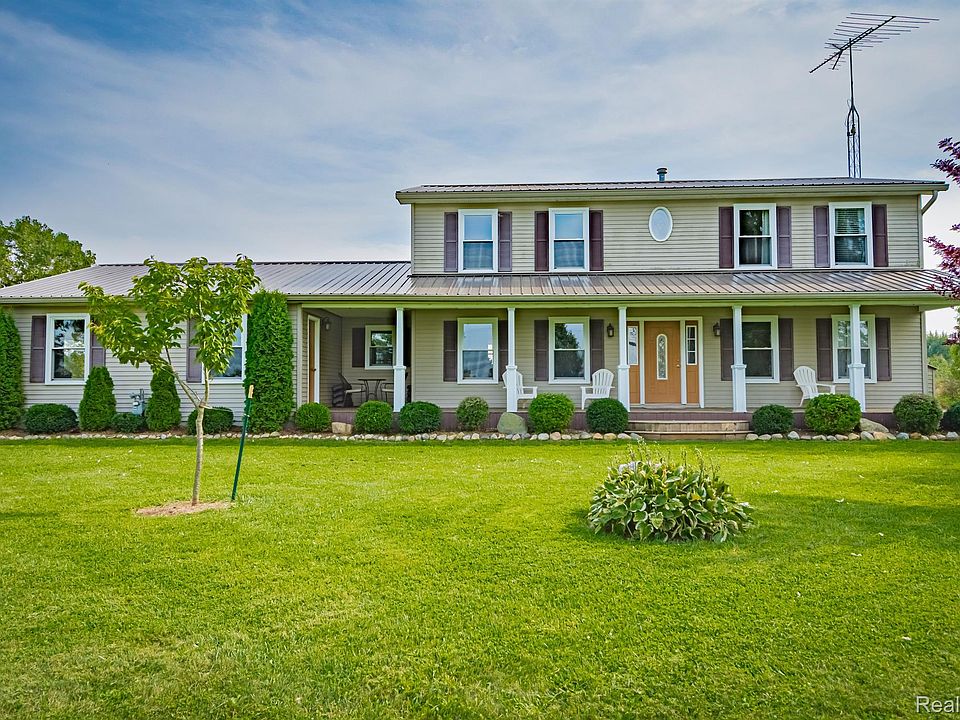 Outside, the possibilities are endless! The expansive 5-acre property offers plenty of room to roam, garden, or simply enjoy the great outdoors. The property also includes a spacious pole barn with a cement floor, perfect for storing equipment, a workshop, or converting into your dream space. Enjoy fishing in the fully stocked pond, or just relax on the house length covered porch or two-tiered deck. See amenities list in photos.
