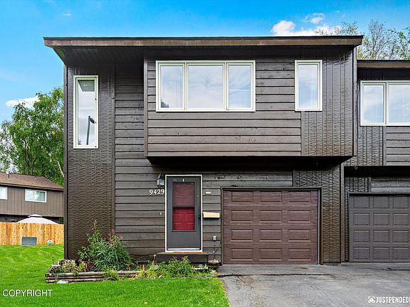 All the great amenities of a single family home at a condo price! South Anchorage location, end unit w/ open concept living & kitchen area, lots of cabinet space & gas range! Wood burning FP, master bdrm w/ remodeled private bath, large bedrooms & closets, private fenced yard w/ shed. Free RV parking & tennis courts! Freshly painted, new garage door opener, well maintained & ready for a new owner!