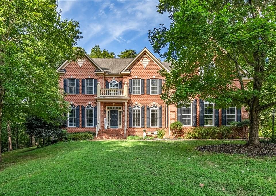 Welcome home to this exceptional 6,100+ sq ft home in the sought-after Stonehouse Glen community. This residence blends timeless craftsmanship with modern updates, featuring cherry hardwood floors, soaring ceilings, a dramatic two-story stone fireplace, and expansive windows. The chef’s kitchen boasts 42” cabinets, pull out cabinet drawers, a 14-ft island with seating and prep sink, granite counters, double ovens, and gas cooktop. A first-floor guest suite, tray-ceiling formal dining room, and sunlit morning room enhance the main level. Upstairs, the luxurious primary retreat offers a vaulted sitting area, spacious bathroom with garden tub, and new custom shower. The fully finished basement provides a kitchenette, bar seating, rec room, bedroom, and full bath—ideal for guests or private multi-generational living. Outside, enjoy tiered decks, a paver patio, butterfly garden, and wooded privacy. Stonehouse Glen offers resort-style amenities including golf, pools, tennis, and clubhouse.