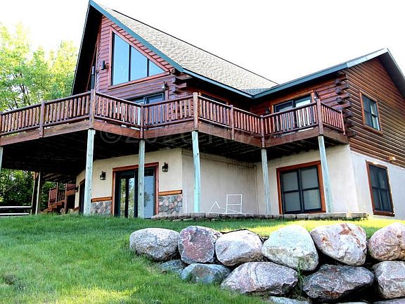 DREAM LOG HOME JUST WAITING FOR YOU ON THE BEAUTIFUL SHORES OF LAKE ELSIE IN HANKINSON! This year round home has so much to love with tons of natural light, vaulted ceilings, rock fireplace, kitchen island, spacious loft area, huge walkout family room with large bar, antler chandeliers & a wrap around deck for those stellar views of Lake Elsie! Top it off with a geothermal system and heated basement and garage floors! It boasts a main floor master suite and laundry. Enjoy those cooler evenings in the included newer hot tub conveniently located right outside living area on the deck facing the lake! Not to mention the very large kitchen with tons of storage, including a kitchen island. Property also includes half of the lot to the south which is great to park those boats and campers!