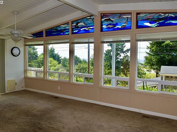 CUSTOM HOME BY THE SEA! Ocean, Rogue River, and Bay views. Single level, three bedroom, two full bath home. Living room and family room both with their own fireplaces. Kitchen has custom cabinets and granite counters. East maintenance yard and deck. Great neighborhood.