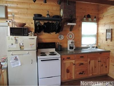 Enjoy beautiful sunsets on your private deck. Totally remodeled year round cabin, custom built knotty pine cabinets through out this cute cabin. Screened in porch over looking the lake. 154 feet of lake shore includes a Newman roll in dock.