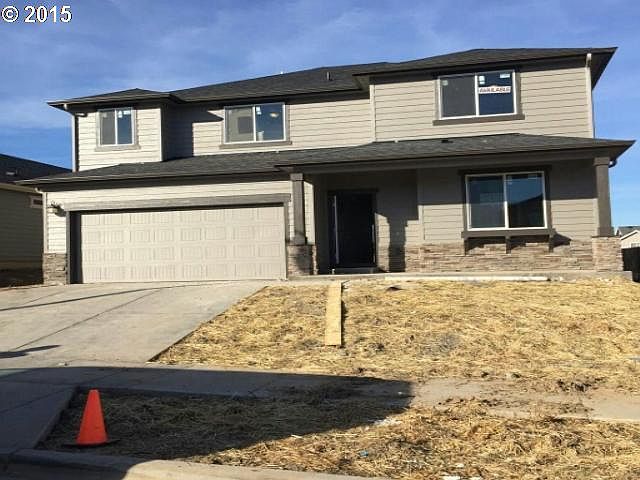 This spacious four bedroom home allows for privacy upstairs w/ an open family room downstairs. Wonderful view from both the front yard and deep backyard. Features to note in this home include: quarts counters, HW floors, rear covered patio, HUGE backyard, masonry rock accents, sink in laundry room, full tile b/s, Stainless steel appliances, gas range, 8lb carpet pad, plus more! Photos are of same floor plan. Home to be finished by 3/2.