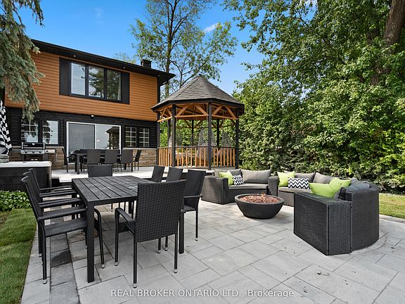 Stunning fully renovated waterfront home on long private property nestled on the shores of Lake Simcoe. With 5 bedrooms plus office (2 being in a private in-law suite) and 5 full bathrooms, this home has room for the whole family! Whether lounging outside by the gas or natural fireplace, out on the custom composite dock, in the 12-person sauna or 8-person hot tub or on the composite deck, you will love every inch. Not to mention inside with master suite facing Lake Simcoe with complete privacy, enjoy dual closets and ensuite. Two wings and staircases to this home are perfect for large families, or for the teenagers to have their own space. Two kitchen areas (both with quartz countertops), two living rooms, and bathrooms at every turn. Cozy up inside with the fireplace while relaxing music plays throughout the whole home's sound system. Dual second floor laundry is just another bonus but with almost everything being 2-4 years young it is turnkey move in ready to say the least. Gas BBQ hookup, parking for 9 vehicles in oversized driveway, 4 car garage (double tandem) and just down from popular marina and restaurant, this lake home will leave you in awe. Dont miss the well-lit up home at dusk with pot lights everywhere or turn off the lights, take in the sunset and enjoy the views under the gazebo. This waterfront beauty has perfection written all over it. 2025 garage door openers, 2024 pressure tank, 2021 Ac, and furnace, 2022 all landscaping and extensive patio areas and firepit, 2022 dock, 2021 hot water tank, 2016 uv system, 2025 uv light, 2025 Professionally painted Benjamin Moore