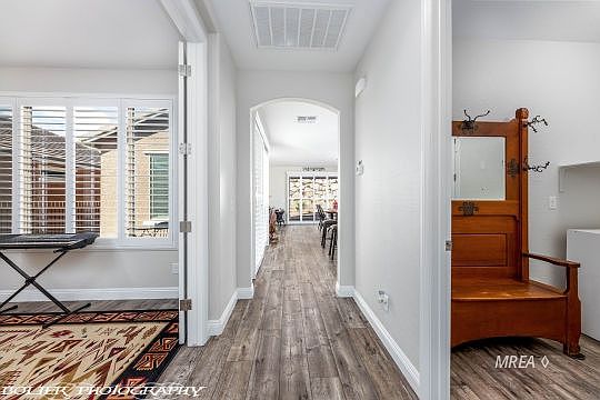 This exquisite, 1 year old, 1859SF Sun City Haven boasts 2 bedroom plus a den. The many costly upgrades total more than $100k including over $23k in flooring & costly plantation shutters throughout. The design elements integrate a comfortable, relaxed style and add modern touches such as gorgeous vinyl plank flooring, upgraded Level 5 white shaker-style cabinets, and a stunning Level 5 granite counter-height island. The kitchen is the heart of this home ad provides an exceptional area where you can entertain family & friends. There is an AV Built-in unit, complete with fireplace, located in the large living area. The large master bedroom has a spa-like en-suite complete with a large soaking tub and gorgeous custom shower with a seat. The second bedroom has a hall bath, with low-threshold entry. The den, with double doors, provides a flex space you can use as another sleeping space, computer room, or for any use in this large, private space. The outdoor area is classy and beautiful. You will love the pavered, side-yard courtyard & extended walkway which connects to the rear covered patio. It is your own personal oasis. Room for a pool! SID Paid!!! Move into perfection!
