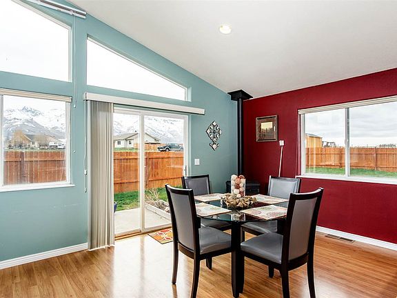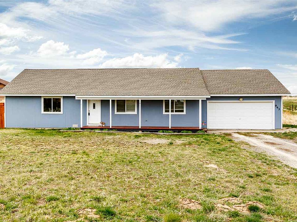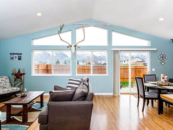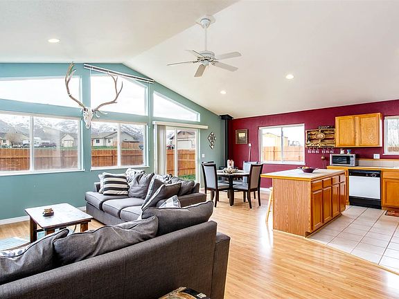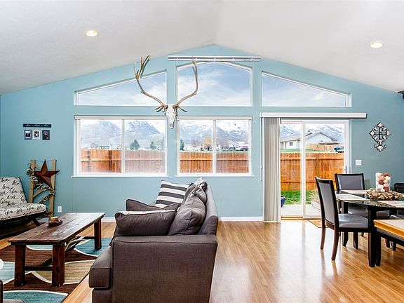 Astonishing view of the Ruby Mountains in this cute three bedroom two full bath home. Patio off the master bedroom to enjoy your coffee and view. Open concept kitchen, dining and living room, great for entertaining. Back yard is fully fenced.