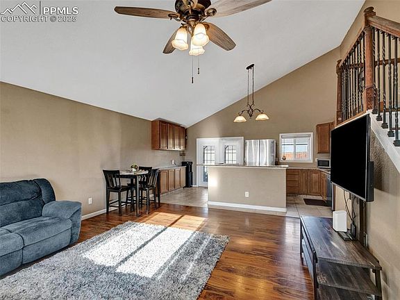Welcome to your next home! This wonder 3-bedroom, 3-bathroom residence offers the perfect blend of comfort, style, and convenience. Step inside and be greeted by vaulted ceilings that create a bright and airy atmosphere. The heart of the home is a cozy family room, complete with a fireplace, ideal for relaxing evenings with loved ones. The well-appointed kitchen offers stainless steel appliances with plenty of cabinetry space. Outside, you'll find a large, fully fenced backyard, perfect for kids, pets, and outdoor gatherings. Enjoy summer barbecues on the covered patio or simply relax and take in the peaceful surroundings. Located in a low-density zoned neighborhood, this home offers a sense of privacy and tranquility. Enjoy easy access to schools, parks, and close proximity to Fort Carson making this home ian ideal choice for military families as well. Don't miss the opportunity to make this wonderful property your own! Schedule a showing today!