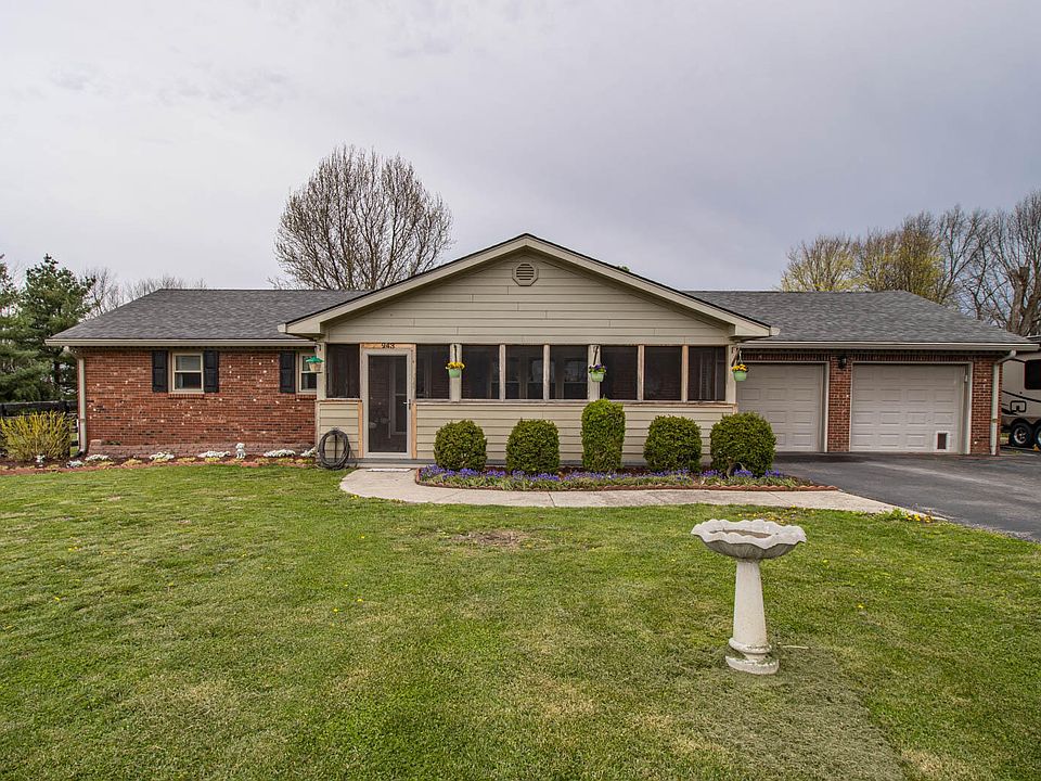 Check out this beautifully remodeled 3 bedroom, 2 spa-like bathroom home featuring one-level living, tile & luxury vinyl plank, freshly updated kitchen, two living areas with a pass-thru gas fireplace, sunroom with all season living, two sliding patio doors leading to a large deck with privacy in mind, great for grilling and entertaining. Home has a generator back up. Screened in front porch with cottage feel. 30Amp Hookup for Camper next to garage. Attached 2 car garage with work area and utility sink. Back yard completely fenced, level yard with a 12x24 metal storage building complete with electric and shelving. All this on one acre! This home is move-in ready. Country setting but within minutes to town & shopping, 20 minutes to Lexington. Buyer to verify schools. Selling As-Is, Inspections Welcome.