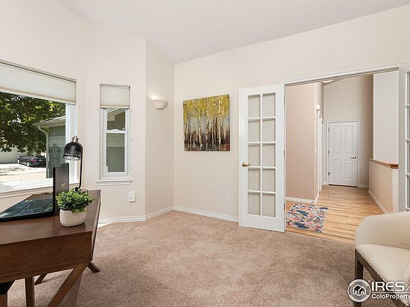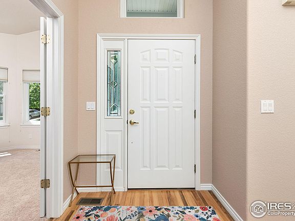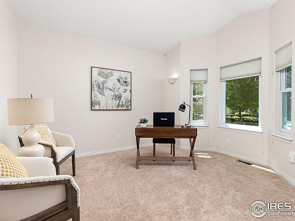 NEW PRICE! Welcome Home- This attractive, ranch style home is a total lock and leave style of home (HOA takes care of all lawn care, PLUS shovels front walk and driveway in the winter) and features views of Longs Peak Golf Course! This 1 owner home has a very open concept with vaulted ceilings and is ideal for entertaining. 2nd bedroom on the main level is listed as a bedroom but could also work as a wonderful home office or cozy den. Generous living room features a cozy gas fireplace and brand new windows looking out over the back yard. Light and bright kitchen includes wood floor, solid surface countertops, cabinets have pull-out shelves, white appliances & eating nook with access to back patio with new back sliding door. Convenient laundry room is on the main level, along with a 3/4 bath. Private primary suite is generous and offers a 5-pc bath w/double sinks, a shower stall & large walk-in closet and also has access to back patio with new back sliding door. Huge basement is framed out with a family/rec room combo full bath, bedroom and HUGE storage area. This wonderful home is move-in ready! Quick closing possible! A must see- Make it yours today!
