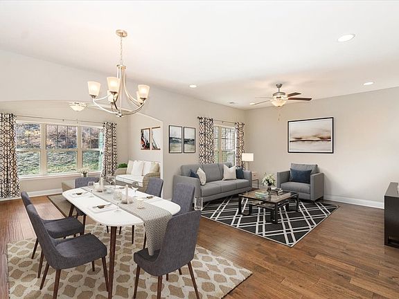 This home is not just a place to live; it is a spacious haven in a wonderful community. Low-maintenance living allows you to enjoy quiet mornings on the private covered patio, a resort-style pool, a workout facility, walking paths, a playground, and monthly social activities. The main level features an open floor plan with Weathered Gate hardwood floors, satin nickel light fixtures, ceiling fans, and additional upgraded details. The master bedroom boasts a large en-suite bath with frameless walk-in shower, 36” double vanities, beautiful, framed mirrors, and a spacious walk-in closet. At the front of the home, you will find an additional bedroom with a walk-in closet and a full bath situated right across the hall, perfect for guests or privacy for your use. The kitchen features quartz countertops, Benten Birch Flagstone cabinets, timeless white subway tile, a gas stove, a spacious pantry, and a coffee bar. It comes equipped with a stainless steel refrigerator, microwave, dishwasher, and gas stove for your entertaining needs! The second level of this home is equipped with a full bath, storage area that has been finished as a third bedroom, plus an additional bonus/flex space that can be used for entertaining or finished off as a fourth bedroom.