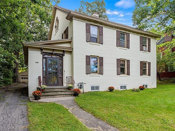 Welcome to 943 Comstock Ave in the Syracuse University area. This gracious, brick Colonial Revival from the 1920's boasts over 4,000 SF of living space! The first floor features an updated kitchen with custom-built ceiling height cherry cabinets, a formal dining room, a sunroom, a half bath and a large living room with fireplace. The fireplace is the heart of the home, it has original tile work by Henry Chapman Mercer and a bookcase with leaded glass on one side. The half bath on the first floor has been updated yet maintains the original basket weave tile flooring. The second floor has 4 bedrooms & 2 full bathrooms. The owner's bedroom features an updated en suite bathroom. There is a large shared bathroom with original fixtures and basket weave tile flooring, a large linen closet and a closet in the hallway. Up to the third floor is an additional 700 SF of living space with a full bathroom (not used). The partially finished basement has a wood burning fireplace (not used) a spacious workshop and laundry room with laundry chute. There are two garages, additional parking spaces, an oversized lot and a partially fenced in yard. Located walking distance to SU, hospitals and more!