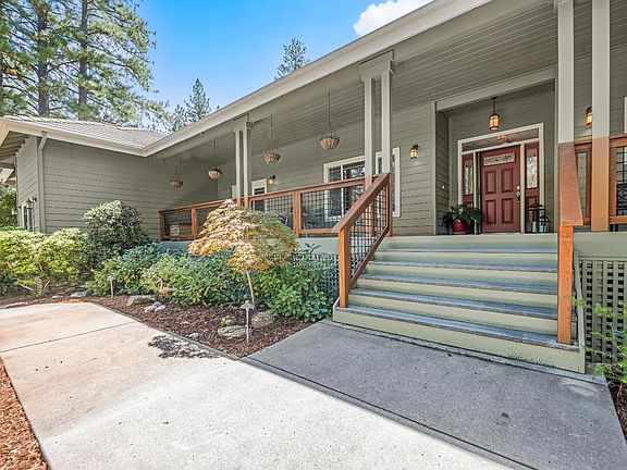 Experience comfort, privacy, and elegance in this beautifully maintained custom home on 3 acres. Built in 2004, this thoughtfully designed property offers a private primary suite with fireplace and deck, and a well-laid-out floor plan ideal for both entertaining and everyday living. A large portion of the interior has been freshly painted. Enjoy low energy bills with owned solar, and relax outdoors under a covered pergola with automatic shades. The landscaped grounds feature a stunning flower garden, dog run, and a custom Osborne rock wall that expands the usable yard perfect for play or quiet reflection. A large 3-car garage plus additional turnaround space provides convenience and flexibility. This home benefits from having public water and irrigation water. There's also a huge area under the home with door and windows offering additional space for storage or other potentials. Come check out all that this well maintained home in a peaceful setting has to offer.