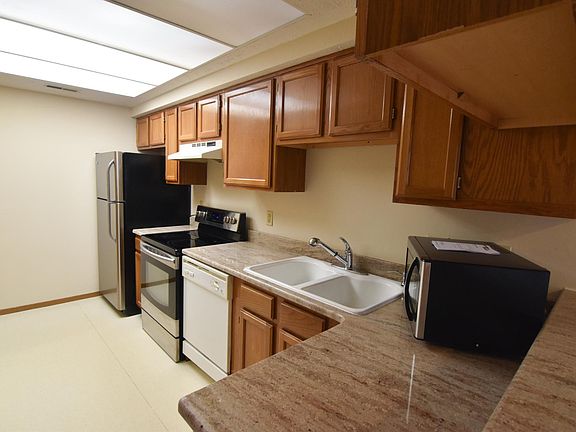 very clean quiet Hunters Ridge condo offers 2 bedrooms 1.5 bathrooms with walk in master bedroom closet, open concept kitchen and living room. Patio for grilling or table and chairs. 1 car garage also on the R bus route. tv cable, water, sewer, trash, lawn care pool and clubhouse with fitness room included. close to grocery stores and bike path. only restrictions is no undergraduates and prefer no pets tenant responsible for gas heat, internet, and electric