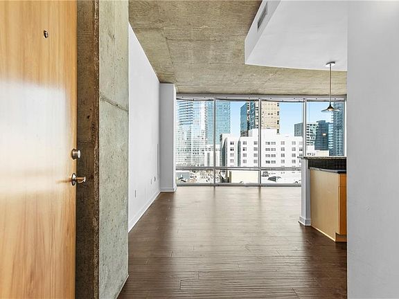 Step into this stunning Midtown Atlanta condo and be captivated by breathtaking floor-to-ceiling windows and soaring 10-foot industrial concrete ceilings, flooding the space with natural light. Enjoy panoramic North-facing views of the iconic Atlanta skyline and East-facing vistas of Piedmont Park, Stone Mountain, and glorious sunrises. This spacious, open-concept floor plan boasts new wide-plank flooring and is perfect for both living and dining. The gourmet kitchen features sleek black granite countertops and stainless steel appliances, ideal for the aspiring chef. Retreat to the private master suite, featuring two walls of windows, dual vanities, and a generous walk-in closet. One of the largest floor plans in the building, this residence offers unparalleled comfort and style in Atlanta's vibrant Midtown. Washer/dryer in unit and one parking space included! The Metropolis building is not only pet-friendly but also offers some of the best amenities in Midtown Atlanta, including 24-hour concierge service, EV charging stations, guest parking, building-wide Bluetooth resident access, and secure bike storage rooms. Forget about your gym membership! Enjoy access to a fully equipped fitness center, as well as a two-story luxury amenity deck featuring a large pool with cabana seating, a rooftop grilling deck with panoramic views, an expansive clubroom complete with a catering kitchen and coffee bar, and multiple firepit areas for cozy gatherings. Situated in one of Atlanta’s most desirable neighborhoods, this studio is within walking distance of top dining spots, Publix, CVS, MARTA, Piedmont Park, the Beltline, and Colony Square. Being located on the 8th floor you have easy access to the amenities.