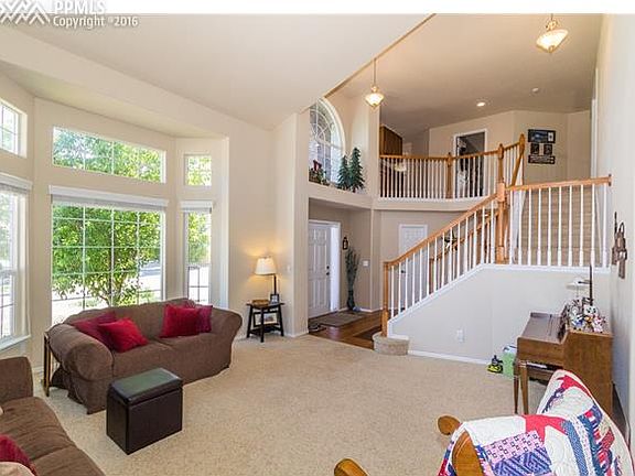 This 2-story home offers comfort, convenience & modern updates throughout. Nestled away in the Northgate Highlands neighborhood walking distance to Smith Creek trails, easy access to shopping, entertainment, main roads, & minutes from USAFA! The entry opens to the spacious living room boasting cathedral ceilings, vaulted ceilings, & large bay window letting the natural light pour in. The adjoining formal dining room is flexible for large tables & has crown molding. From here you can access the updated kitchen featuring hardwood floors, 42" cherry cabinets, gas cooktop, stainless steel appliances, double ovens, granite counters, pantry, & dining nook. From here you can walk-out to the rear patio perfect for bbq's & relaxing, surrounded by scrub oak & mountain views. The main level great room off the kitchen boasts gas fireplace, custom built-ins, & offers a cozy space to relax. Also on the main level is an office w/french doors. Head to the upper level master suite w/ceiling fan, sitting area & adjoining updated 5pc bath w/soaking tub offering views of the mountains. The 3 additional upper bedrooms share the full bath w/ dbl vanity, tile floor & separate commode/shower. The unfinished basement is ready for your perfect design or extra storage. Additional highlights include: main lvl laundry rm, modern paint colors, rounded corners, newer impact resistant roof, high speed internet, & many more. This home is surrounded by all the modern conveniences see it today!