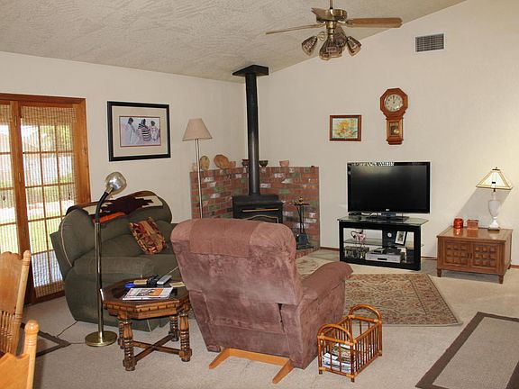 Super nice home in quiet neighborhood. mature landscaping, Large trees,open floor plan, high ceilings, sky lights, wood french door in living area and master BR, wood sills, wood stove, tile bathrooms, large fenced back yard with grassed area for kids and pets. Storage shed, curved driveway into double garage. Close to schools, shopping and hospital. Call listing office to show.