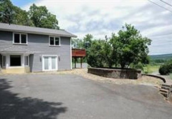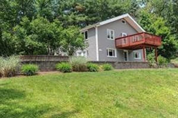 Room with a View! Perched up on a hill with a sweeping vista of the Pelham Hills, in a wonderful South Amherst location. This home has been tastefully updated and offers a lot of living space with a versatile floor plan. Hardwood flooring throughout the 1st floor living area, lovely kitchen with granite countertops and stainless appliances, opening to a beautiful Goshen stone patio. Upstairs there are 3 full baths and 5 possible bedrooms, which could also serve as a fantastic family room or home office. The Master bedroom is complete with a walk-in closet, walk-in shower and a Jacuzzi tub. Generous hallway opens to a sunny deck with lovely eastern views. Close to hiking trails, walk to the South Amherst common or the bike path - you're minutes to town and to shopping.