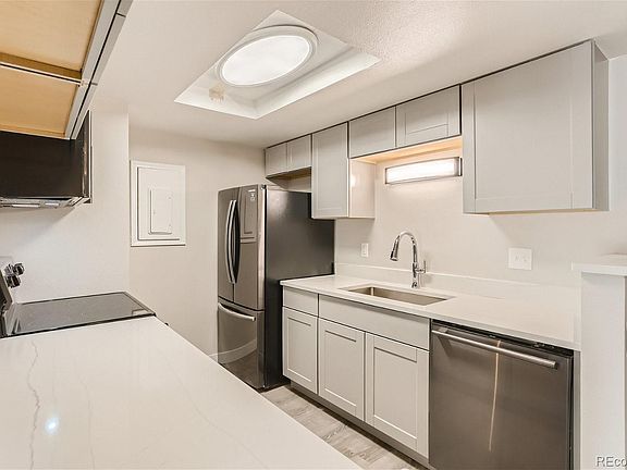 Welcome to this beautiful, light-filled top floor condo, situated in a prime location. Recently renovated, this condo boasts a fresh and modern feel with new paint, lighting, and flooring throughout. The highlight of the renovation is the completely updated kitchen with quartz countertops and dark stainless appliances. Perfect for hosting, the kitchen is open to the dining area, which offers ample space for a table and chairs. The large living room features a cozy fireplace and sliding doors that lead to an extended balcony, where you can enjoy the fresh air and soak up the sun. There is a storage closet off the balcony. The primary bedroom offers a tranquil retreat with a spacious walk-in closet and an ensuite 3/4 bath. An additional bedroom and full bath are also available, making this condo perfect for guests or a home office. For added convenience, a washer and dryer are included in the unit. This unit also comes with a coveted private garage for extra security and storage. Overall, this top floor condo offers the perfect blend of style and functionality, making it a must-see for anyone in search of a beautiful, modern, and comfortable living space.