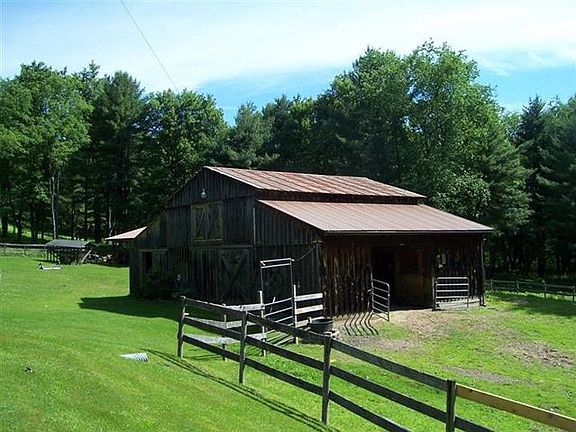 This HANDSOME, WELL-MAINTAINED, RENOVATED four bedroom two and a half bath Farmhouse with THREE CAR attached Garage is set on over TWENTY-SEVEN extremely PRIVATE and SERENE ACRES surrounded by woods and invisible from the road. This ACTIVE HORSE FARMETTE also features a barn with horse stalls, an insulated woodworking shop, and hay loft as well as a fenced riding arena and pastures. Just a short walk from the house and barn along the mowed pathway through the woods to an beautiful SUPER CLEAN STOCKED POND. The pond is so pretty the owners' daughter chose it for the site of her wedding. The STUNNING FARMHOUSE features a HUGE KITCHEN, formal dining room and living room with hardwood floors, a MASTER BEDROOM SUITE with a separate sitting/dressing room and attached full bathroom. The full finished basement includes a HUGE FAMILY ROOM, a potential 5th bedroom (currently used for storage), and another potential half bath. EXTRAORDINARY PROPERTY WITH A FABULOUS PRICE!