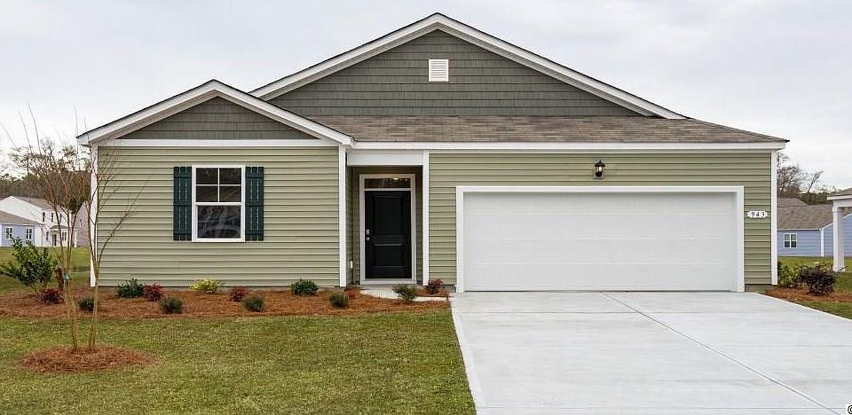 The Kerry plan is a spacious, one-level home perfect for any stage of life. Open concept kitchen, living, and dining area with access to the covered rear porch from the kitchen is ideal for entertaining and grilling! Pond views from the rear porch! Features include modern gray painted cabinets, granite countertops, a fabulous pantry, stainless Whirlpool appliances, and a large island with breakfast bar. The private primary bedroom offers a large walk-in closet, dual vanity, and 5' shower. Conveniences like low maintenance laminate flooring throughout the main living areas and our industry leading smart home technology package are also included. All bedrooms and the living room are pre-wired for cable and ceiling fans. Perfect location 10 minutes to Ocean Drive and Cherry Grove Beaches! (Home and community information, including pricing, included features, terms, availability and amenities, are subject to change prior to sale at any time without notice or obligation. Square footages are approximate. Pictures, photographs, colors, features, and sizes are for illustration purposes only and will vary from the homes as built. Equal housing opportunity builder.)