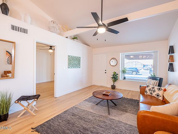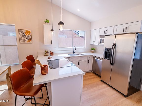 Charming, Move In Ready Townhouse with NO HOA!! Centrally located, ensuring a seamless commute to downtown Mesa, Freeways & much more. Interior boasts 2 Bedrooms, 2 Baths & a functional layout filled with vaulted ceilings and natural light. Fully updated kitchen with White Shaker Cabinetry, Quartz Counters & Stainless Steel Appliances. Sizeable Bedrooms, New wide plank laminate flooring throughout the home. Private backyard space & Laundry hook ups in your 1 Car Garage. Perfect Starter home or investment!