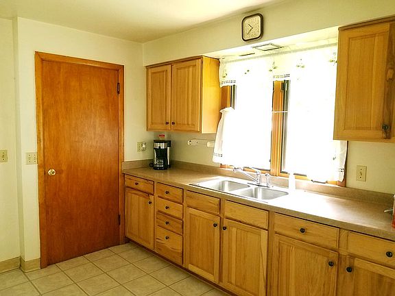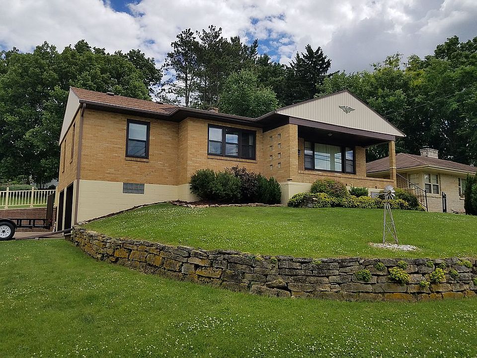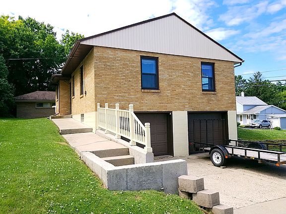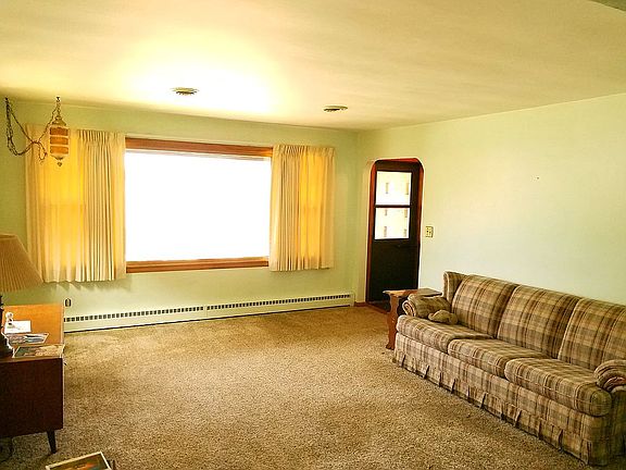 FOR SALE BY OWNER - All BRICK HOME IN DARLINGTON $127,500 -Well maintained brick house on corner lot in Darlington WI. Built in 1955. -3 bedrooms- 1 full bathroom. 1174 Sq Ft -Updated kitchen with Hickory cabinets and laminate floor in kitchen and dining area. -Hardwood floors throughout except kitchen, bath and dining area. Good carpet in hall and living room. All bedrooms exposed wood floors. -Large full 2 car garage. Both have door openers. -High efficiency gas furnace with radiator baseboard heat. -Central Air conditioning- All new in 2019. Ceiling vented. -Water softener. -Large basement with lots of shelves and storage. -Low E double pane replacement window sashes. -All exterior windows are clad- maintenance free with storm windows. -Large lot/yard- 153' X 80' -Circuit breakers. -Roof in very good condition -Great western view from porch.
