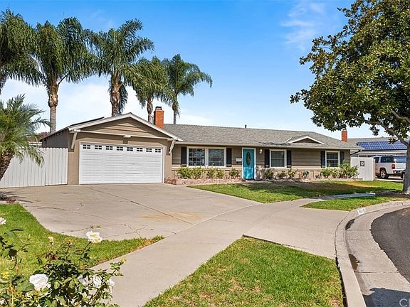 Your ENTERTAINING 3 bedroom single story home awaits you! This backyard has it all from the built in stainless steel BBQ to the firepit. Relax year round in the swimming pool. There is an abundant amount of grassy area for pets, playsets, a trampoline or garden and RV parking. Enter the home through the glass etched door to the living room with custom built ins and cozy fireplace. The kitchen has been updated with new cabinets, laminate flooring, stainless steel appliances, fixtures, hardware, granite countertops and tile backsplash. Master bedroom has French doors with views of the manicured backyard and pool, ceiling fan and mirrored closets. The tastefully designed Master bathroom was recently remodeled with new quartz countertops, dual sinks, tiled step in shower with mosaic backsplash and tile floors. This Home has been remodeled with no detail spared. Additional features include ceiling fans in every room, designer paint colors, 6 panel doors, vinyl windows and slider, recessed lighting and crown molding throughout. Save on energy costs with the solar panels. Convenient indoor laundry room with built in cabinets. You'll never run out of storage with two pull down attic storage areas. Ideally located on a cul-de-sac street and walking distance to La Floresta Shopping Center and Tri City Park. Do not miss out on this beautiful home located in the award winning Placentia Yorba Linda School District.