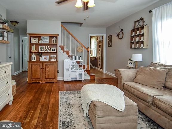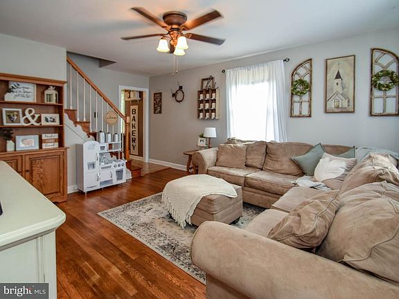 This adorable cape cod is cute as a button and ready for a new owner! Home boasts 2 bedrooms on the 1st floor with ceiling fans, hardwood floors, remodeled bath, sunny living room and generous eat-in kitchen. Finished second floor is currently used as a 3rd bedroom and a separate sitting area, but could easily be 4th bedroom. Relax on the large deck overlooking private, level and fenced backyard. Basement offers laundry area, including washer and dryer, and plenty of workshop and storage space. All this and a one-year HSA Home Warranty make this an exceptional value.