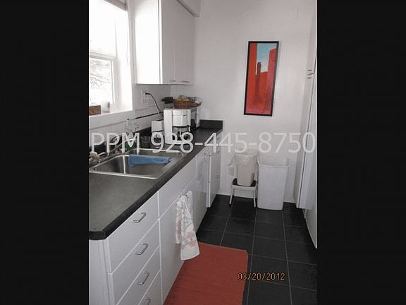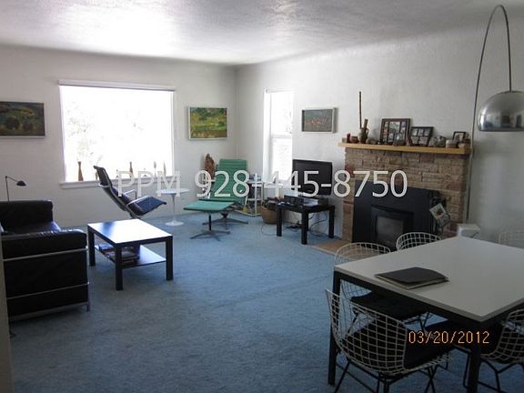 Located among boulders & trees, this furnished 2 bedroom 1 bath house has gas heat, fireplace, cooler, stove, refrigerator, dishwasher and washer/dryer. Hardwood floors in bedroom. Flagstone patio, boulders, trees. All utilities remain in owner's name and are billed to tenant thru agent. Garage not included with rental. Assistive Animals Only.