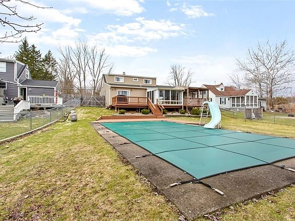Welcome Home! Don't miss this adorable home in the Town of Brewerton situated on just shy of 1 Acre. 3 Bedrooms, 2 Full Baths, Full Basement, Central Air & 1 Car garage w/ unique drive thru access. Enjoy the convenient 1st floor spacious Master w/Sliders leading to the back deck. Don't forget the 2 BONUS Sunrooms! One heated for year-round use & another that's screened & gives you that summer breeze. Both connected and lead you indoors to the over-sized kitchen w/center island & out to the large open deck that will take you to the In-Ground pool. Large Family room w/gas fireplace, formal Dining Room & an additional sitting room, lounging area or office. This home comes w/many updates such as Roof, Siding, Windows & the list goes on. Call today and schedule your private tour!