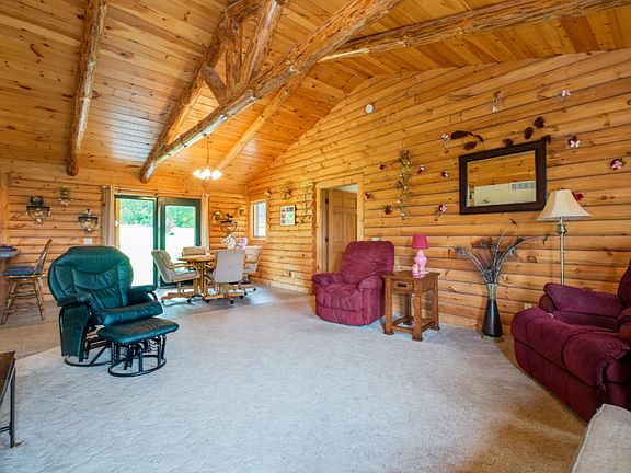 Attention for all that love HORSES AND HARLEYS! This is the place for you! Property features over 10 aces of open rolling meadows with a 28x32 horse barn plus state land with horse trails are near by. Separate 24x28 heated Harley garage. Scenic roads all around the property to ride. Ranch style D-log home features everything you need on one level, hickory kitchen cabinets, slate flooring, stainless steel appliances, full laundry, master suite and another bedroom and full bath on the main level. Plus a full basement with a bedroom and full bath to be finished with an offer. Large open living room with fireplace in the lower level as well(not finished living space). Additional 16x20 log barn/workshop on property. A great location and a must see! Call today for a private tour.