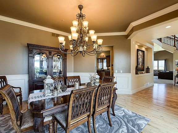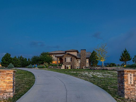 Spectacular views from every room in this custom luxury home in prestigious Spirit Ridge. 5 bedroom, 5 bath house w/ incredible views of the Front Range and the Denver city lights. 1.5 acre lot is fenced and professionally landscaped. Features gourmet kitchen with high end appliances, a hearth room/eat in kitchen, formal dining room, butlers pantry, large great room, study, 2nd office, large kitchen pantry & mudroom. Beautiful wood beams in great room. Open floor plan with vaulted ceilings and beautiful finishes. 4 fireplaces with tile and real stone surrounds. Finished WALKOUT basement. Expansive 4 car garage. Plenty of windows make it bright and airy! Custom window treatments. Flagstone covered patio w/hot tub to soak in the views! Multiple, custom built ins including a secret room in the basement perfect for storage. Crown molding and wainscoting, solid alder doors. Wired for security system. Low HOA dues include social membership to Black Bear Golf Club.