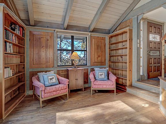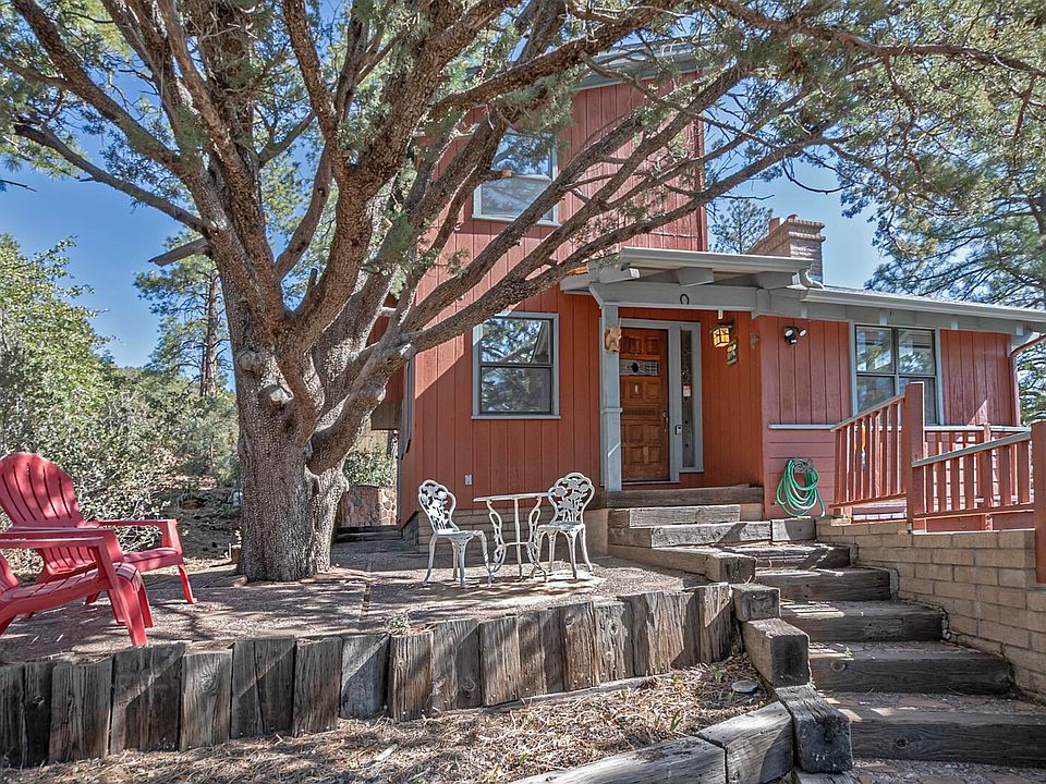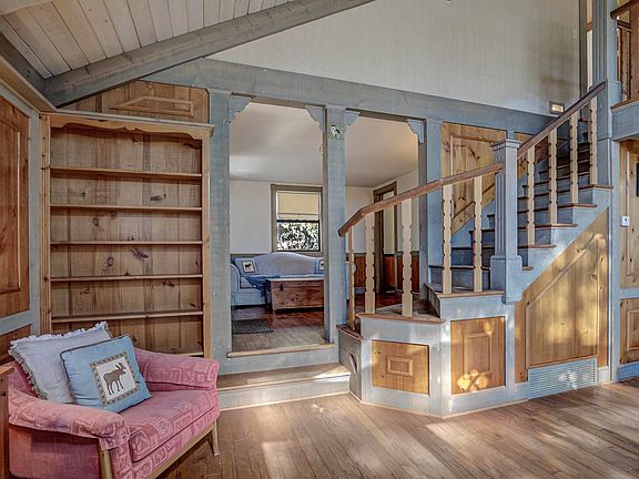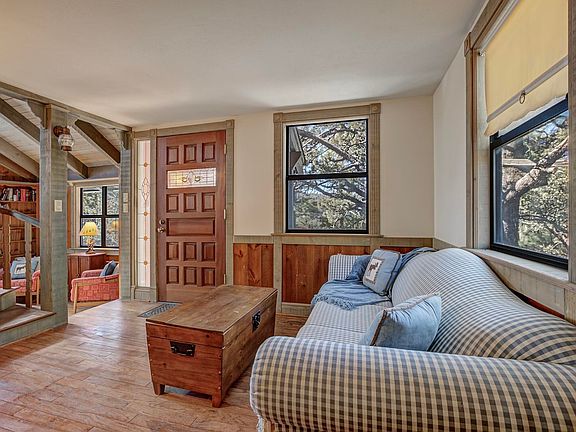 This enchanting cottage style home is a true storybook retreat. Filled with character and charm, it boasts beautifully crafted wood details throughout the home, real hardwood floors and stained glass to accent the large picture windows. Don't miss the hidden storage compartments under the stairs. The garage has a custom built screen door allowing fresh mountain air without the bugs. Outside, enjoy the privacy of the deck or meander through the peaceful walking paths lovingly created on this 1/2 acre lot. This is a truly unique home that just exudes charm! Furniture can convey with sale of home making this move in ready and turn key.