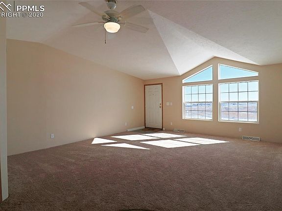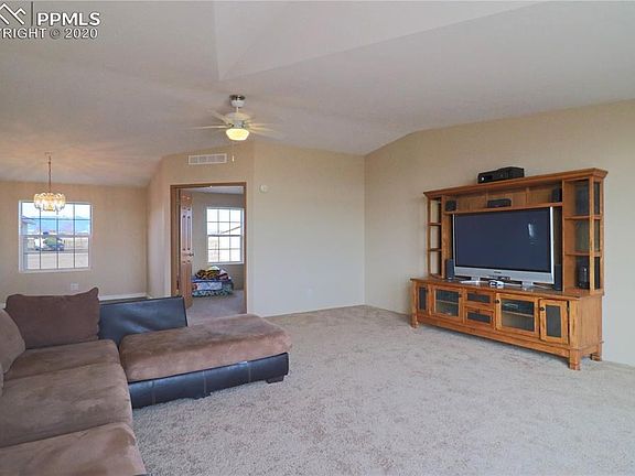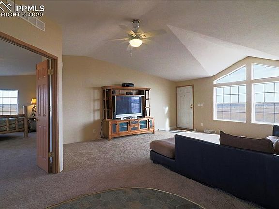 Enjoy the quiet country life while taking in spectacular Pikes Peak Views from the back patio. Ready for horses and chickens there are 2 loafing sheds, a chicken coop and fenced acreage. Miles of trails enhance this country community. Just remodeled with new carpet and paint this open airy and bright home offers all main level living including great room with fireplace just off the kitchen with breakfast bar and stainless refrigerator. There is a spacious formal dining room, and 4 bedrooms each with an attached bath. The large master has his and hers walk in closets and a 5-piece bath with large soaking tub. This property is 10 minutes south of Fort Carson with local school and fire department close by with easy access to Colorado Springs and Pueblo. With nearly 15 acres of space to roam, there is plenty of room for a large barn, expansive garage, workshop, horse arena or whatever you may be dreaming of.
