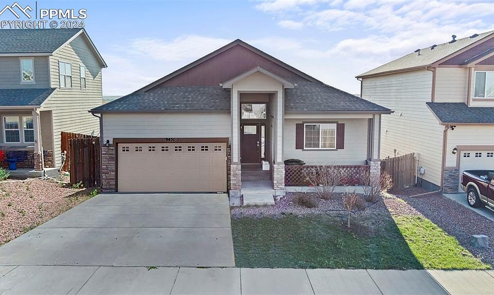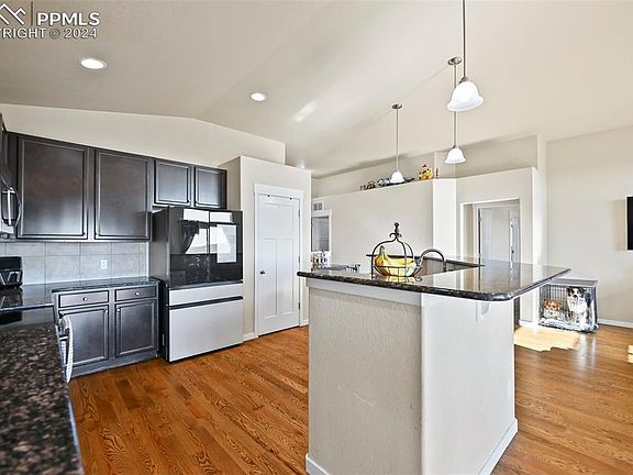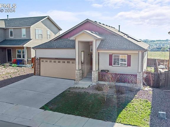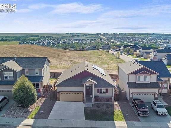 Step inside this beautiful ranch-style home with 5-bedrooms, 3 full baths with solar panels to keep your utility bills low, that is minutes away from Fort Carson and backs up to open space!**Once you walk in the door, you'll be wowed by the real hardwood floors that flow throughout the main level over to a large kitchen with a huge granite counter-top island, plenty of counter space, upgraded appliances, featuring a new state-of-the-art smart fridge, all connected to comfortable living and dining room**Off the dining room, walk out to a lovely covered deck which overlooks open space behind the home and rolling hills in the background**The backyard boasts tons of space for all of your activities and features low maintenance turf in the fully fenced yard**Over in the main level master suite, you'll find a large bedroom connecting to a spacious five piece master bath complete with split vanities, a large soaking tub, separate shower and a huge walk-in closet**Two more bedrooms with a full bath and main level laundry/mud room round out the main level to offer complete main-level living if desired**There's also tons of space in the basement with a very large living room and well appointed dry bar making for a fantastic entertainment area**There are also two more huge bedrooms in the basement and a large full bathroom with a dual vanity, so no fighting over sink time!**This well cared for home has so much to offer--a brand new central air conditioning unit, an upgraded premium smart fridge, a newer roof, natural hardwood flooring throughout the main level, a fully owned solar panel system to keep utility bills low, and so much more!**Don't wait, schedule your showing today!