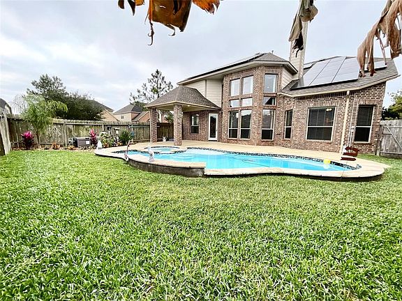 Beautiful Westin built 2 story home with a Pool, roof is only 2 yrs old, recently installed solar panels This home has 4/5 bedrooms, 3.5 bath home in a gated community, located on large corner lot on a cul-de-sac street. Kitchen offers a large island, SS appliances, granite countertops, butlers pantry. Primary suite has tray ceilings, walk-in closet, dual vanities and a whirlpool tub. Upstairs has 3 bedrooms, two full bathrooms, a large media room/(5th bedroom with recently added closet), and a large game room. Some of the upgrades include: water softener system, sprinkler system, 42\" cabinets, bronze faucets and lighting fixtures. Covered patio leads to the newly installed heated pool with a hot tub, waterfall and lights. Pool has upgraded ozone filter which uses very little chlorine. The community offers Tennis courts, Soccer field, Beach Volleyball, Lighted Basketball courts, swimming pool, splash pad, playground and recreation center and many walking paths along the private lake.