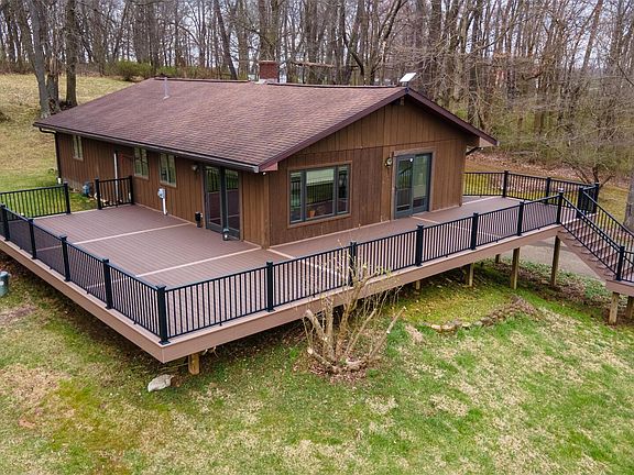 This custom built, raised ranch home is ready for your special touch! Sellers have decided to downsize, so now is your chance to own a little slice of paradise set high on the hill. This 4 bed 3 full bath home has a large window filled main floor living room, great sized dining space, and a large cabinet filled kitchen with gas stove. 3 bedrooms and 2 full baths finish off the main floor. Downstairs you'll find the 4th bedroom, 3rd full bathroom, additional family space, as well as the laundry room and a 6x6 canning cellar. Outside is so peaceful, with the most beautiful well thought out flower beds surrounding a stunning stone waterfall. There's a detached 8+ car pole barn with concrete floors and electric as well!