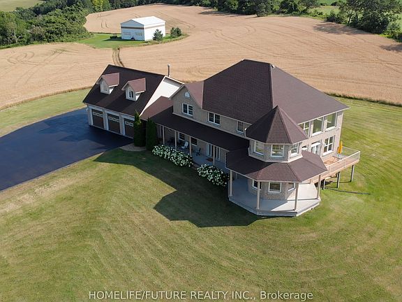 Private Country Estate living at its finest! On a cul-de-sac with 24+ acres. This luxurious home offers approx. 5000+ above grade and 2000+ unfinished basement living. A paved, winding driveway leads to breathtaking 360 views of Rice Lake, islands, and rolling countryside. Peaceful, private, away from noisy roads, gorgeous sunrises and relaxing sunsets. An elegant front foyer with oak curved stairway, beautiful Chandelier, open concept to soaring Great Room with 18' ceiling and double French Doors leading to outside deck. Huge Kitchen and island with stainless steel Appliances, Built in Appliances and Octagon shaped Formal Dining Room. Elegance is obvious throughout. Superb Workmanship and Hardwood Floors throughout, Vaulted Ceilings. Multi-generation home with 3 car attached garage and 3 car Driveshed. One 14 foot garage door. Massive Bedrooms with individual heating controls in each room. Radiant in-floor heat in basement floors and all bathrooms. Master Bedroom offers spa-like ensuite bath. Many Massive windows let light flow in everywhere. Covered porch offers outside entertaining in all seasons. Water filter system includes Reverse Osmosis, UV light, Water Softener. Private Nature trail with Mature Trees, Apple Trees. Private, Quiet and Peaceful. Once in a lifetime Living. 15 minutes to Cobourg. FIBE Internet available, Commercial Grade Security System, Generator Back up Panel.