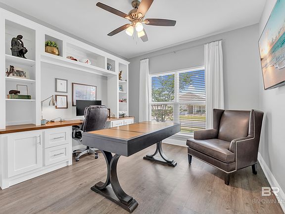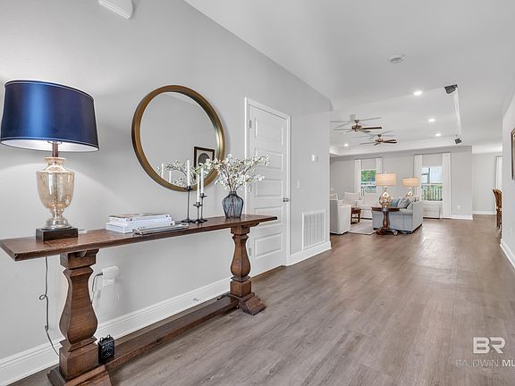 Welcome to 9432 Amethyst Drive, a 2022-built, 4-bed, 3-bath Craftsman spanning 2,486 sq ft of turn-key luxury. This Gold Fortified, Smart Home-enabled gem blends designer elegance with Daphne’s coastal charm on a beautifully landscaped lot.Step into an open-concept layout with 9-foot ceilings, where natural light highlights a chef’s kitchen featuring a sprawling island, stone countertops, 36-inch gas range, wall oven, and stainless appliances—perfect for entertaining. The master suite offers a serene retreat with double vanities, his-and-her closets, and a private water closet. Designer upgrades shine throughout: custom drapes, a tongue-and-groove breezeway ceiling with iron chandelier, and built-in cabinetry in the living room and office. Pre-wired for surround sound, this home is ready for movie nights.Outside, enjoy a large screened-in patio and extended concrete area overlooking a regraded yard with French drains, vibrant camellias, and lush greenery. The 3-car garage provides ample storage for vehicles or hobbies.Nestled in a vibrant neighborhood, cast a line in the stocked fishing pond or explore nearby parks and trails. Minutes away, Baldwin County’s top-rated schools (like Daphne East Elementary, 2 miles) nurture young minds, while Gulf Shores beaches and Mobile Bay offer boating and kayaking.Move-in ready, this coastal haven blends luxury and lifestyle. Contact me to see 9432 Amethyst Drive today! Buyer to verify all information during due diligence.