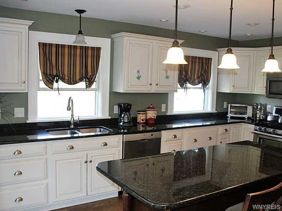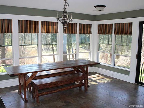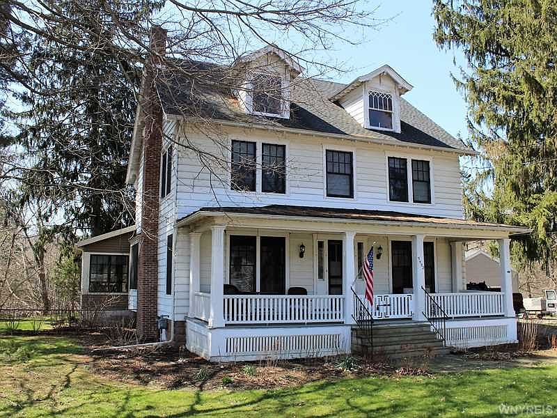 Stately 1910 colonial restored & updated to reflect modern appeal on 9.25 acres with rear area on 18 Mi. creek. Over 120K in improvements. In-floor radiant heat entire 1st flr. The 25x16 ultra modern kitchen has granite counters, built-ins, ceramic floor & huge windowed eating area. Owners added custom woodwork & period wainscoting in the dining rm & other areas. 1st floor bdrm has adjacent ceramic bath. Gorgeous wood staircase to upper level three bdrms and 2nd ceramic bath. 40+ windows replaced, ultra high tech boiler, attic & other insulation=$114 bal bill. Large 2 story garage. True taxes.