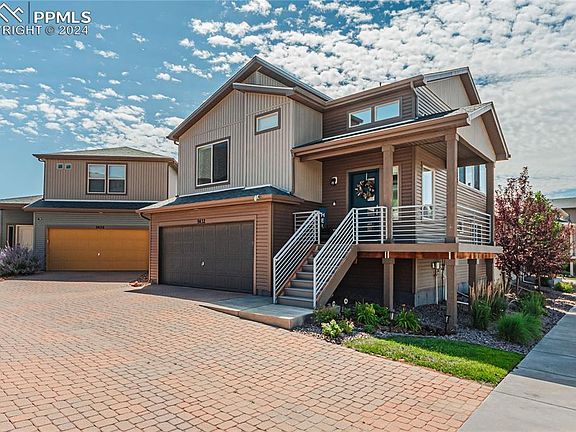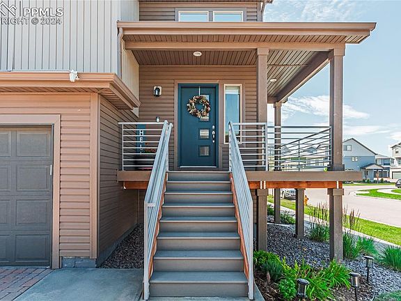 This stunning home is located in the highly desirable Banning Lewis Ranch, renowned for its master-planned community. This home features 2 bedrooms, 2 bathrooms, and a 2-car garage. It offers an open floor plan with upgraded fixtures, including ceiling fans, bathroom sinks, tile and countertops, screen doors, as well as window blinds and tints. The home is further enhanced by a wrap-around front porch/deck, a rear deck off kitchen, and a walkout lower-level patio, leading to a beautifully landscaped private, fenced backyard oasis adorned with lush trees, and garden/flower beds. Positioned on a corner lot within a cul-de-sac, it offers lots of convenient parking, an open floor plan with a spacious living room filled with natural light. The impressive kitchen features a large granite island/breakfast nook with ample seating, perfect for dining. It's equipped with stainless steel appliances, a spacious pantry, access to the back deck, luxury laminate wood flooring, and staggered white cabinets adorned with crown molding. The master suite includes a walk-in closet and luxury bath with custom granite and tile work. The lower-level walkout adds another bedroom, a full bath, and a flexible space ideal for a family room, office, or gym. Additional features include a crawl space, under-stair storage, central air conditioning. Located near the Powers Corridor, home to a plethora of restaurants and shopping options, and the extensive amenities of Banning Lewis Ranch, such as exquisite swimming pools, water parks, a dog park, a resort-style clubhouse, a garden area, tennis and pickleball courts, fitness/weight room, walking/hiking trails, and award-winning schools. Peterson and Schriever Air Force Bases are also conveniently close. The United States Air Force Academy and Fort Carson Army Base are both within a 30-minute drive.