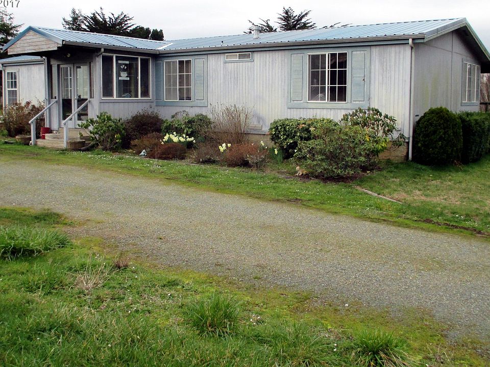 5 ACRES! 1990 Manufactured Home, Langlois Community Water, Enclosed Front Entry, Covered Back Deck, 30'X68' 3 Bay Shop/Garage, 2 Ponds. Formerly a Small Cranberry Farm, Situated just North of Langlois @ Bono Rd. Plenty of Room for the RV, Excellent Farming Possibilities!