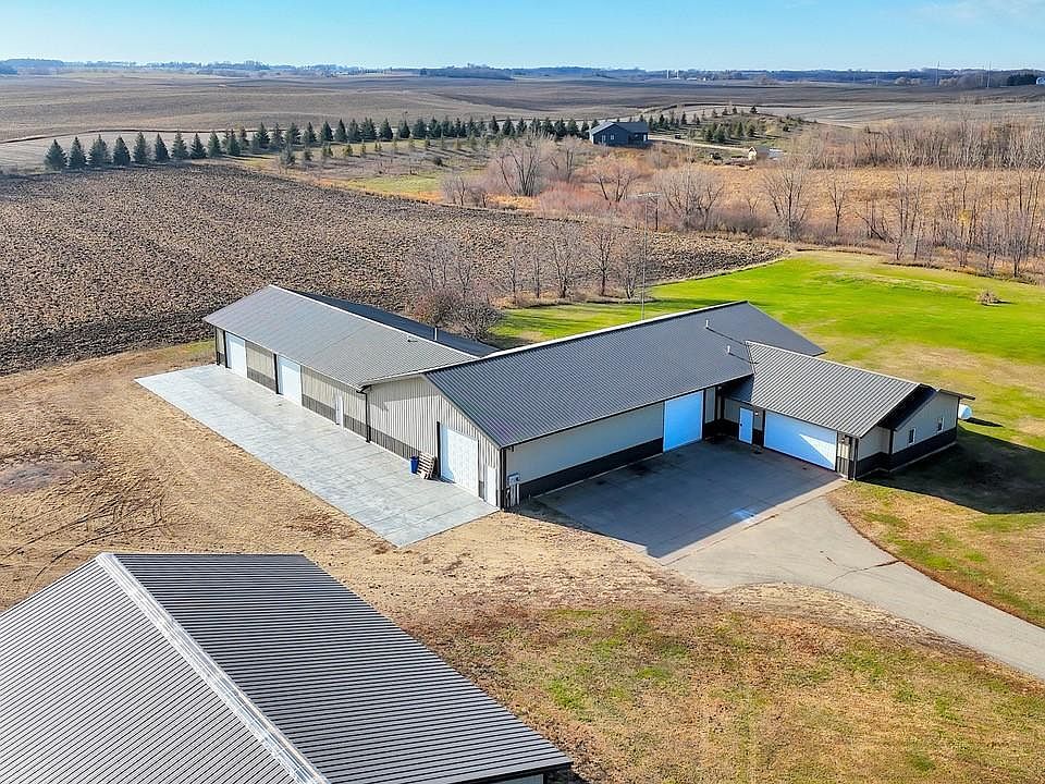 10 Acres with exquisite commercial building which includes studio, living area with attached heated garage. Building consist of sectioned complex for commercial, mfg, retail, ag complex or heated storage. Geo thermal heating, plus in-floor heating through-out, four large over head entry doors, separate areas for work or show. Separate 28x42 cold storage building. 12x24 door, cement floor. Great building site for home plus 5.75 acres currently planted.