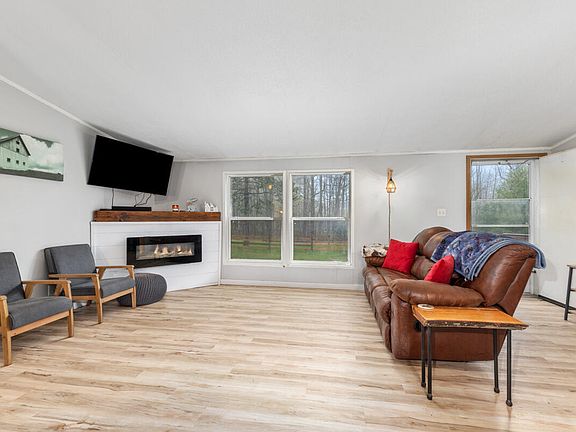 Welcome home to 9433 8 Mile! This home has so much to offer. The interior features 3 bedrooms, 2 full bathrooms, and spacious kitchen, dining, and living room. A few added bonuses include a cozy electric fireplace, new trim, and new flooring. Not to mention, all appliances are staying. On the exterior you'll find a huge 30x48 pole barn with 12 foot ceilings and water hookup, a large 3 acre lot, chicken coop, fencing with water spigot, 12x20 barn, and new well. Don't let this one slip through your fingers. Call today to schedule your private tour!